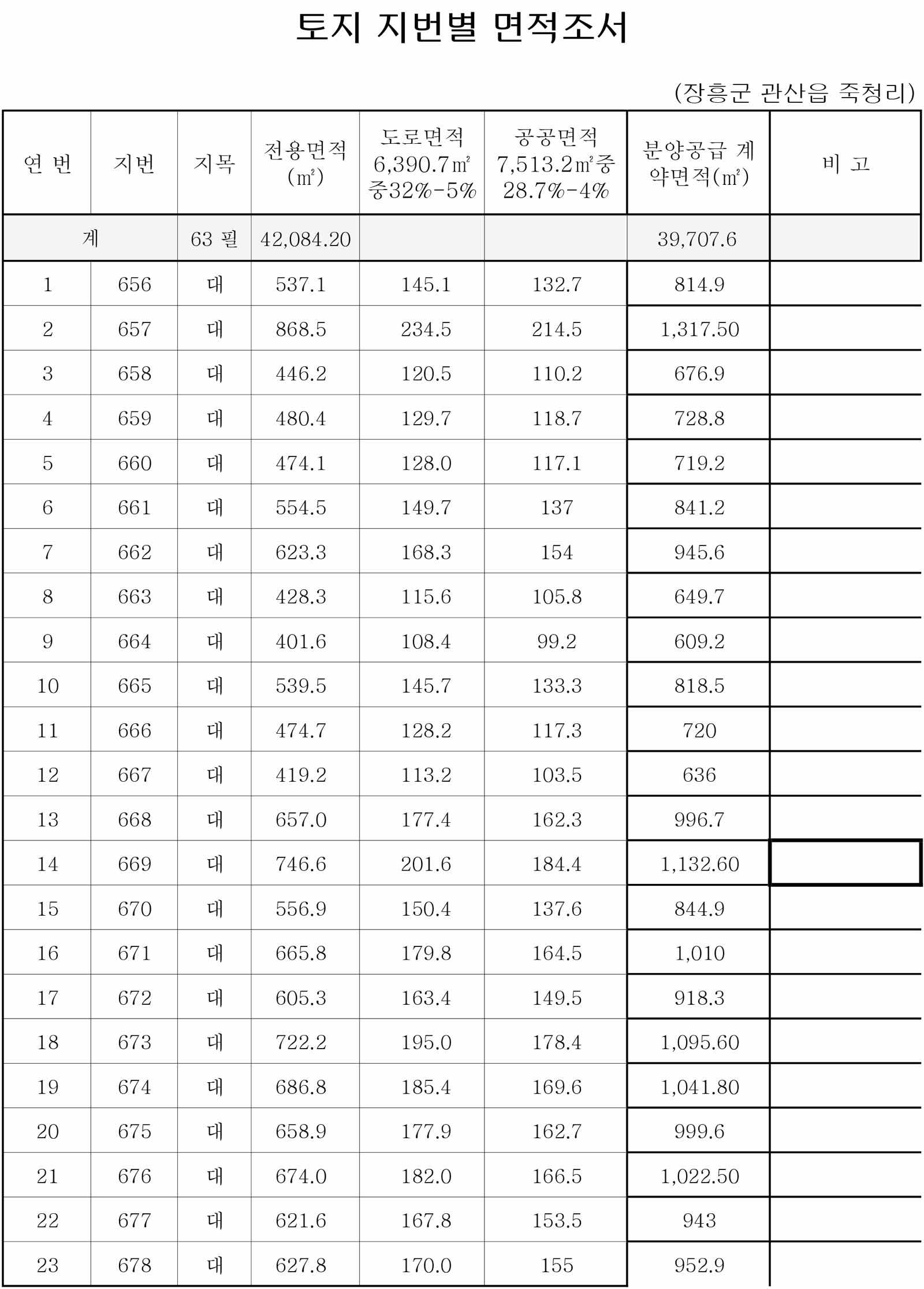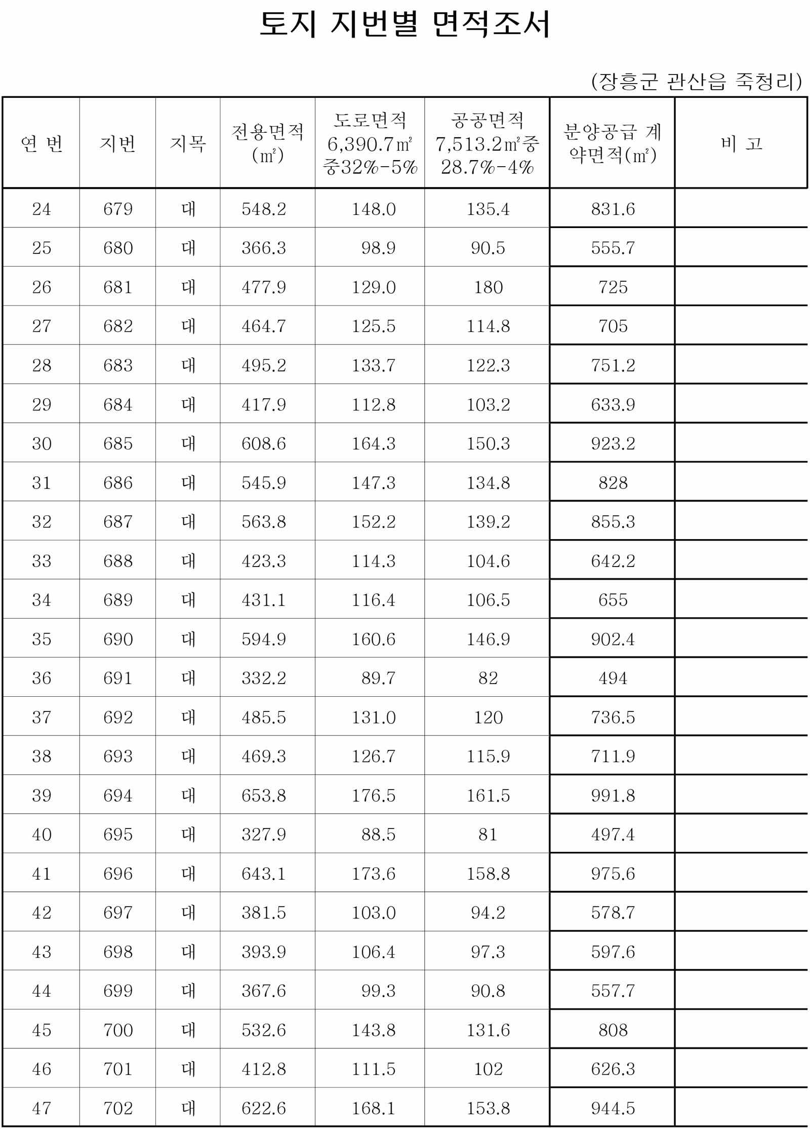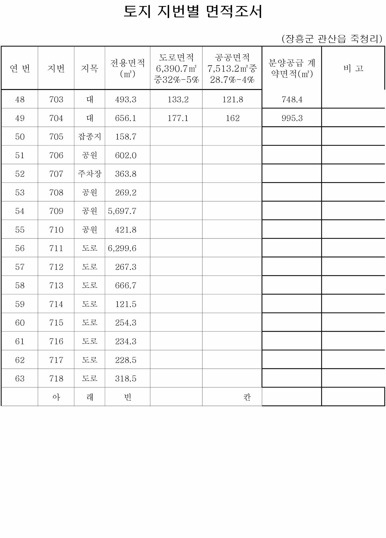 전용토지면적+도로+공공=분양공급면적입니다.