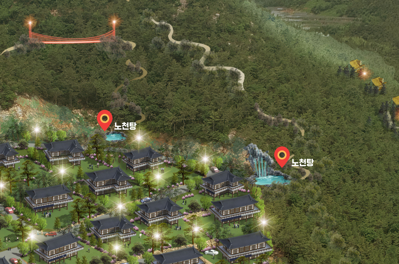 해수,암반수 2곳의 노천탕과 폭포를 만들어 입주민과 관광객의 편의를 제공할 것입니다.